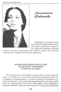 Федотова А. Изобразительное искусство Кольского Заполярья в начале ХХ века / Анастасия Федотова // Культурологический альманах АСТЭС / Ассоц. творч. союзов. – Мурманск, 2012. – № 8. – С. 216-229.