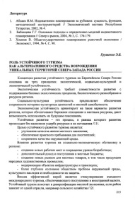 Грушенко, Э. Б. Роль устойчивого туризма как альтернативного средства возрождения уникальных территорий Северо-Запада России // Север и рынок. - 2006. - № 1 (16). - С. 215-219.
