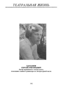 ТЕАТРАЛЬНАЯ ЖИЗНЬ ХАРЛАМОВ СЕРГЕЙ ГРИГОРЬЕВИЧ Актер мурманского театра кукол, помощник главного режиссера по литературной части 192