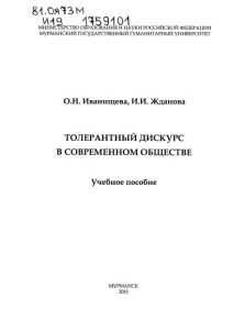 Иванищева, О. Н. Толерантный дискурс в современном обществе : учебное пособие / О. Н. Иванищева, И. И. Жданова ; М-во образования и науки Рос. Федерации, Мурм. гос. гуманитар. ун-т. - Мурманск : МАГУ, 2015. -135 с. : ил.