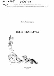 И / f f ФЕДЕРАЛЬНОЕ АГЕНТС1 ВО ПО ОБРАЗОВАНИЮ МУРМАНСКИЙ ГОСУДАРСТВЕННЫЙ ПЕДАГОГИЧЕСКИЙ УНИВЕРСИ1 1П О.Н. Иванищева язык и культура МУРМАНСК 2007
