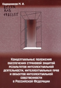 Кадашников, М. И. Концептуальные положения обеспечения страховой защитой результатов интеллектуальной деятельности, интеллектуальных прав и объектов интеллектуальной собственности в Российской Федерации / М. И. Кадашников. - Мурманск : Дроздов-на-Мурмане, 2018. - 240 с. : табл.