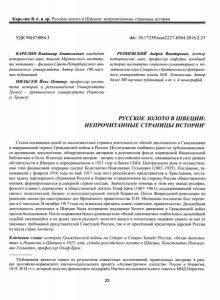 Карелин, В. А. Русское золото в Швеции: непрочитанные страницы истории / В. А. Карелин // Вестник Северного (Арктического) федерального университета (САФУ). - 2016. № 2. - С. 23-34. - (Серия «Гуманитарные и социальные науки»).
