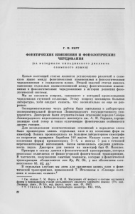 Г. М. KEPT ФОНЕТИЧЕСКИЕ ИЗМЕНЕНИЯ И ФОНОЛОГИЧЕСКИЕ ЧЕРЕДОВАНИЯ (на м а т е р и а л е к и л ь д и н с к о г о д и а л е к т а с а а м с к о г о я з ык а ) Целью настоящей статьи является установление различий в саам ском языке между фонетическими изменениями и фонологическими чередованиями в синхронном плане. Второй задачей статьи явилось выяснение отдельных взаимоотношений между фонетическими измене ниями и фонологическими чередованиями в истории развития фоно логической системы. Мы не касаемся вопроса, связанного с историей происхождения чередования ступеней согласных. Этому вопросу посвящена большая литература, хотя следует сказать, что окончательно он еще не раз решен. Экспериментальная часть работы была выполнена в лаборатории экспериментальной фонетики Ленинградского государственного уни верситета. Дикторами были студенты-саамы отделения народов Севера Ленинградского педагогического института им. А. И. Герцена, хорошо знающие свой говор и тонко отличающие фонетические особенности других говоров. Для исследования количественных отношений в парадигме слова была произведена запись отдельных слов и их косвенных форм на кимограф. Запись производилась на большом лабораторном кимографе со скоростью вращения барабана 148 мм/сек. Каждое слово (или его косвенная форма) произносилось 3—4, а иногда 5 раз с точковой перечислительной интонацией. Затем вычислялась средняя длитель ность звука. Диктором для записи на кимограф был Ф. Яковлев. Примеры в статье даются в фонологической транскрипции, которая несколько отличается от финно-угорской фонетической транскрипции. В частности, полузвонкие смычные геминаты, которые в фонетической транскрипции обозначаются как Bp, Dt, Gk, у нас обозначены соот ветственно ЪЪ, dd, gg.1 В отдельных случаях мы даем для сравнения запись слов в фоне тической транскрипции, примененной Т. Итконеном в «Словаре колт- ских и кольских саамов».2 1 См. статью Г. М. Керта и М. И. Матусевич «К вопросу о составе согласных фонем в вороньинском говоре кильдинского диалекта саамского языка» (Уч. зап. Ленингр. унив., № 314, сер. филол. наук, вып. 63, 1962). 2 Т. I t k o n e n . Koltan ja Kuolanlapin sanakirja. Hki, 1958. 20