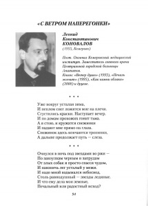Коновалов, Л. К. "С ветром наперегонки" : стихи / Леонид Константинович Коновалов // Щедра Россия словом родниковым : к Дню поэзии Кольского Заполярья / Мурм. отд-ние Союза писателей России. - Мурманск, 2012. - С. 94-95.