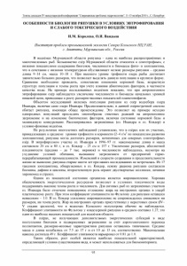 Тезизы докладов IV международной конференции “Современные проблемы гидроэкологии”, 11-15 октября 2010 г., С.-Петербург ОСОБЕННОСТИ БИОЛОГИИ РЯПУШКИ В УСЛОВИЯХ ЭВТРОФИРОВАНИЯ И СЛАБОГО ТОКСИЧЕСКОГО ВОЗДЕЙСТВИЯ И.М. Королева, О.И. Вандыш Институт проблем промышленной экологии Севера Кольского НЦРАН, г. Апатиты, Мурманская обл., Россия В водоёмах Мурманской области ряпушка - одна из наиболее распространённых и многочисленных рыб. Большинство озёр Мурманской области относятся к олиготрофным, с низкими показателями содержания биогенов, численности и биомассы фито- и зоопланктона, что в сочетании с низкими температурами обуславливает мелкие размеры ряпушки - средняя длина 9-14 см, масса 10-18 г. При высоком уровне трофности озера рыбы достигают значительно больших размеров, что позволяет выделять данную популяцию в крупную форму. Сравнение необходимо проводить, сопоставляя изменения кормовой базы, возрастную структуру популяции и темпы роста при учёте влияния абиотических факторов, в частности качества воды. На примере исследованных водоёмов показано, что при антропогенном эвтрофировании озёр наблюдается увеличение численности и биомассы начальных уровней пищевой цепи, приводящее к росту размерно-весовых показателей планктонофагов. Объектом исследований являлись популяции ряпушки из озёр водосбора озера Имандра, включая само озеро Имандра. Предположительно, в данной озёрно-речной системе обитает ряпушка, имеющая общее происхождение. Это позволяет на примере исходно однородных популяций проследить многообразие ответных реакций на антропогенное загрязнение и на изменение биотических факторов, включая состояние кормовой базы и межвидовую конкуренцию. Рассматривались загрязнённые (оз. Имандра и оз. Ковдор) и условно-фоновые водоёмы. По результатам многолетних наблюдений установлено, что в озёрах или их участках, принадлежащих к среднему уровню трофности и кормности (2-4 г/м3по показателям развития зоопланктона), ряпушка могла достигать размеров, нетипичных для северных олиготрофных озёр. В эвтрофируемом участке оз. Имандра в 1996-97 гг. максимальные длина и масса составляли 20 см и 80 г, в оз. Ковдор - 23 см и 157 г. Увеличение размеров, абсолютной плодовитости (средняя - до 7 тыс. икринок) и численности наблюдалось, несмотря на ухудшение условий обитания, вызванное загрязнением от предприятий горно перерабатывающей промышленности. Изменений в скорости созревания и продолжительности жизни не выявлено; ряпушка старше шести лет при наших исследованиях не встречалась. Из 17 таксонов зоопланктона, обнаруженных в оз. Ковдор, основу рациона ряпушки составляли босмины, дафнии и циклопы, второстепенную роль играют двустворчатые моллюски, личинки хирономид и стрекоз. Одним из показателей состояния организма является жиронакопление. Хорошая обеспеченность энергетическими ресурсами позволяет в условиях токсичности воды поддерживать высокие темпы роста и численность. Для сиговых рыб из загрязнённых участков оз. Имандра было отмечено повышенное отложение жира на внутренних органах в ущерб пластическому росту. При этом коэффициент упитанности по Фультону для ряпушки оставался невысоким - 1.0. В оз. Ковдор усиленное жиронакопление не сопровождалось снижением ни размеров, ни темпа роста. Жир на внутренних органах присутствовал у нерестовы