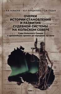 Ковалев, А. В. Очерки истории становления и развития судебной системы на Кольском Севере : монография. В 3 т. Т. 1. Суды Кольского Севера с древнейших времен до середины XX века / А. В. Ковалев, Ю. П. Бардилева, С. М. Седых ; Мурманское региональное отделение Общероссийской общественной организации «Российское объединение судей», Совет судей Мурманской области, Мурманский арктический государственный университет. – 2-е изд., испр. и доп. – Москва : Издательство «Перо», 2021. – 215 с.