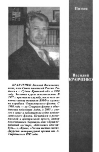 Поэзия Василий КРЛВЧ1 ИКО КРАВЧЕНКО Василий Васильевич, поэт, член Союза писателей России. Ро­ дился в г. Судаке Крымской обл. в 1958 году. Закончил курсы аквалангистов. В 1977 г. призван на службу, после чего за­ кончил школу техников ВМФ и служил на кораблях Черноморского флота. С 1998 года — на Северном флоте в объе­ динении подводных лодок, в 2005 г. уво­ лен в запас и работает на судне вспомо­ гательного флота. Печатался в регио­ нальной и центральной прессе, автор коллективных сборников, книг «Души не­ видимый костер», «Отзовись кто-ни­ будь... », «Крик», «России чистые снега». Лауреат литературной премии им. А. Твардовского 1995 года.