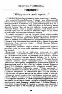 Валентина КУЗНЕЦОВА “ И буду жить в своём народе.. РУБЦОВСКИЕ дни обычно бывают в самом начале года: 3 января - день рождения Николая Рубцова, а 19 января - день гибели поэта. И рубцовские чтения проходят в эти дни, и рубцовские встречи по всей земле российской. В минувшем году старт этому марафону был дан в декабре. Чтения состоялись в Санкт-Петербурге в библиотеке имени Николая Рубцова. При ней активно работает литературный музей «Николай Рубцов: стихи и судьба». Директор этой библиотеки и создатель музея Татьяна Алексеевна Абрамова собрала на эти чтения со всей страны организаторов рубцовских центров. В декабре минувшего года на «круглом столе» присутствовали только руководители и создатели рубцовских музеев, директора библиотек, где созданы рубцовские фонды. Принимала участие в работе и директор пока единственного государственного музея Н. М. Рубцова в селе Никольском Вологодской области Галина Алексеевна Мартюкова. Тема «круглого стола» - «Музей Николая Рубцова: аспекты деятельности». Обсуждались серьезные вопросы. Каждый выступавший старался рассказать о том, что в этом плане в регионах делается. Обмен опытом был деловой. Заведующая музеем Г. А. Мартюкова посетовала, что мала посещаемость - в год 500-600 человек. Я тихо ахнула: у нас в музее в год 7-8 тысяч человек бывает. Но вспомнила, сколь далека от городов Никола (так называл деревню Николай Рубцов)... В. С. Белков - писатель, организатор частного домашнего музея Н. Рубцова в Вологде поделился опытом своей исследовательской и издательской деятельности. Опыт работы литературного музея Николая Рубцова на Нижегородской земле в 2003 году был широко освещен журналом "Север". Т. А. Абрамова - организатор 10-х рубцовских чтений в Санкт- Петербурге, директор библиотеки имени Рубцова рассказала о практике собирательской работы. Показала, как налажены в музее учет и хранение материалов. Да, любопытный факт: в музей Рубцова в Санкт-Петербурге прислал интересные документы Фадеев. В 1968 году в Мурманске радиостанция «Атлантика» объявила конкурс на песню о моряках. Фадеев написал музыку на стихотворение Николая Рубцова «Ты с кораблем прощалась...». Песня заслужила поощрительный приз. А к грамоте прилагалось и письмо, в котором жюри конкурса отметило достоинства музыки Фадеева и... слабый текст Н. Рубцова. Посему и приз лишь поощрительный. И грамота, и письмо ныне хранятся в петербургском музее Н. М. Рубцова при библиотеке, что на ул. Шот- мана. 68