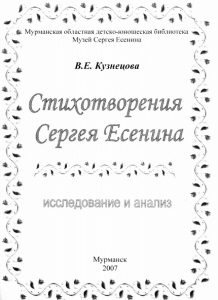 Кузнецова, В. Е. Стихотворения Сергея Есенина : исследование и анализ / В. Е. Кузнецова ; Мурм. обл. дет.-юнош. б-ка, Музей Сергея Есенина. – Мурманск : Мурманская областная детско-юношеская библиотека, 2007. - 43 с.