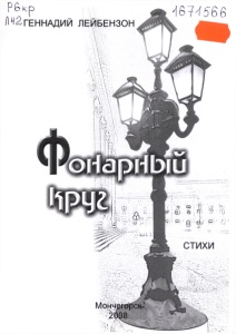 Лейбензон, Г. А. Фонарный круг : стихи / Геннадий Лейбензон. - Мончегорск : Центральная городская библиотека, 2008. - [24] с. : портр.