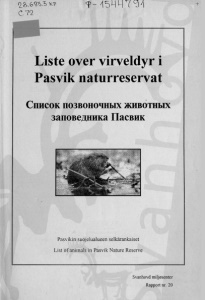 Q_ 2>.&<ЗЪЗ кр С 72 < Р ~ 4 5 ЧЧ ( ЯМ Liste over virveldyr i Pasvik naturreservat Список позвоночных животных заповедника Пасвик Pasvikin suoj e lua lueen se lkarankaiset List o f an imal s in Pasvik Na ture Reserve Svanhovd miljosenter Rapport nr. 20