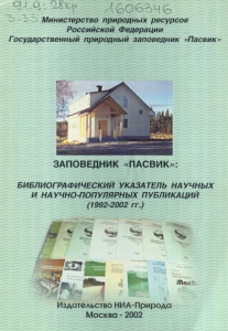 Заповедник «Пасвик» : библиографический указатель научных и научно-популярных публикаций (1992-2002 гг.) / М-во природ. ресурсов Рос. Федерации ; [сост. О. А. Макарова]. - Москва : НИА-Природа, 2002. - 32 с.