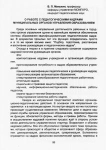 Манухин, В. П. О работе с педагогическими кадрами муниципальных органов управления образованием / В.П. Манухин // Муниципальное управление образованием: опыт, поиски, проблемы. - Мурманск, 2000. - С.50-57.