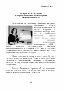 Матвеева, А. А. История Кольских саамов в документах Государственного архива Мурманской области // Библиотека как социальный институт сохранения и устойчивого развития культур и культурного самовыражения коренных народов Севера : международная научно-практическая конференция, 20-23 ноября 2012 г. / Мурм. гос. обл. универс. науч. б-ка. - Мурманск, 2013. – С. 82-93.