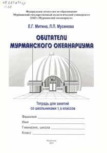 2 1 4 -я *4 tcp П 6 6 Федеральное агентство по образованию Мурманский государственный педагогический университет ОАО «Мурманский океанариум» Е.Г. Митина, Л.П. Мусинова ОВиТЙТЕЛ11 МУМ1ЙНСКОГО ОКЕЙНЙМУМЙ Тетрадь для занятий со школьниками 7,8 классов Фамилия _____________________ Имя _________________________ Гимназия, школа_____________ Класс ____ Мурманск 2005