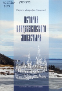 Митрофан (Баданин, игумен; 1953-). История Кандалакшского монастыря / игум. Митрофан (Баданин). – Санкт-Петербург : Ладан ; Мурманск : Издательство Мурманской епархии, 2012. – 30, [2] с. : ил., портр. – (Святыни Кольского Севера ; кн. 3).