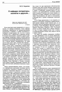 Наумлюк, М. В. О кафедре литературы, коллегах и друзьях... / М. В. Наумлюк // Наука и образование. - 2009. – № 10. - С. 182-184.