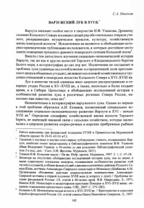 С.А. Никонов ВАРЗУЖСКИЙ ЛУК В X V I в .‘ Варзуга занимает особое место в творчестве И.Ф. Ушакова. Древнему селению Кольского Севера посвящен целый ряд обстоятельных очерков уче­ ного, раскрывающих историческое прошлое, культуру, хозяйственную жизнь поморской волости1. Исключением не являются и обобщающие исто­ рико-краеведческие публикации исследователя, в которых достойное место заняло освещение прошлого древнего поморского селения Кольской земли2. Вместе с тем целостного изучения социально-экономической истории Варзуги, так же как и других волостей Терского и Кандалакшского берегов Белого моря, в историографии до сих пор нет. Исключение не составляет и проблема лука (единицы нал огообложения и о пределенной доли крестьян­ ского двора в общинных угодьях), являвшегося основой хозяйственных и тру­ довых отношений в поморских волостях Кольского Севера в ХѴІ-ХѴІІІ вв. Лук в качестве тяглой единицы имел широкое распространение в се­ верных уездах России в ХѴ-ХѴІІІ вв., а также, несколько в более позднее время, и в Сибири. Целостных и обобщающих исследований истории и особенностей развития лука в различных регионах Севера России, на­ сколько нам известно, пока нет3. Незначительна и историография варзужского лука. Одним из первых к этой проблеме обратился А.И. Копанев, посвятивший специальное ис­ следование социально-экономическому развитию Варзуги в XVI - начале XVII вв.4 Определив специфику хозяйственной жизни волости Терского берега, не имеющей никакой связи с сельским хозяйством, которая заклю­ чалась в широком развитии озерно-речных и морских прибрежных рыбных Работа выполнена при финансовой поддержке РГНФ и Правительства Мурманской области (проект № 10-01-43101 а/С). Сведения о научных и научно-популярных публикациях ученого, посвященных Вар- зуге, наиболее полно представлены в библиографическом указателе И.Ф. Ушакова (Иван Федорович Ушаков: к 90-летию со дня рождения: библиографический указа­ тель 3-е изд., доп. / Сост. О.Н. Фролова. Мурманск, 2011). 2 Ушаков И.Ф. Кольская земля // Он же. Избр. произв. Мурманск, 1997. Т. 1. С. 47-58. Несмотря на отсутствие обобщающих исследований истории лука, тем не менее, в науке существуют локальные экскурсы, посвященные особенностям развития этой тяглой и условной, в общем фонде угодий, единицы в различных районах Русского Се­ вера (Кемь, вотчины Александро-Свирского монастыря в Обонежье) (Шабанова А.М. Организация обложения крестьян владельческими повинностями Александро- Свирской вотчины в первой половине XVIII века (к вопросу о луке) // Проблемы ис­ тории феодальной России: Сб. статей к 60-летию проф. В.В. Мавродина. JI., 1971; Иванов В.И. Монастыри и монастырские крестьяне Поморья в ХѴІ-ХѴІІ веках: ме­ ханизм становления крепостного права. СПб., 2007. С. 273-282). Копанев А.И. Неземледельческая волость в ХѴІ-ХѴІІ вв. // Крестьянство и классовая борьба в феодальной России: Сб. статей памяти Ивана Ивановича Смирнова. Д., 1967. 142