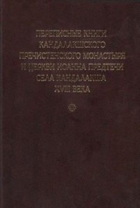 Никонов, С. А. Переписные книги Кандалакшского монастыря и церкви Иоанна Предтечи села Кандалакша XVIII века / Министерство науки и высшегообразования Российской Федерации, Мурманский арктический государственный университет ; подготовка текстов и исследование: С. А. Никонов, Л. В. Пушкина. - Электрон. дан. (1 файл : 141 МБ). - Москва ; Санкт-Петербург : Альянс-Архео, 2019. - 328 с.