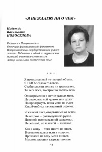 Новоселова, Н. В. "Я не жалею ни о чем" : стихи / Н. В. Новоселова // Щедра Россия словом родниковым : к Дню поэзии Кольского Заполярья / Мурм. отд-ние Союза писателей России. - Мурманск, 2012. - С. 73-76.