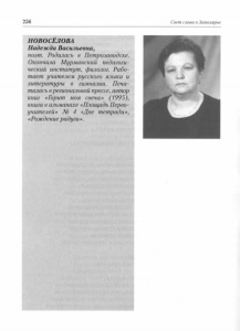 Новоселова, Н. В. Но мне и здесь Россия снится : стихи / Н. В. Новоселова // Свет слова в Заполярье : антол. лит. Мурмана : к 30-летию Мурм. писат. орг. ; [Мурм.обл. обществ. орг. Союза писателей России]. - Мурманск, 2008. - С. 256-267: фот.