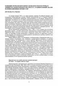 ОСВОЕНИЕ МУРМАНСКОГО БЕРЕГА КОЛЬСКОГО ПОЛУОСТРОВА И АРХИПЕЛАГА НОВАЯ ЗЕМЛЯ В 1920-1930-Х ГГ.: СРАВНИТЕЛЬНЫЙ АНАЛИЗ КОЛОНИЗАЦИОННЫХ ПРОЦЕССОВ* Д.П. Беляев, Е.А. Орехова Со второй четверти XIX в. на северо-западных окраинах Российской империи стала складываться неблагоприятная ситуация. Бурный экономический рост в Северной Норвегии сопровождался активизацией норвежских промышленников на российских приарктических территориях. Усугублялось это их слабым экономическим развитием, малой или полной незасе- ленностью, что создавало реальную угрозу постепенного экономического, а затем и политиче ского поглощения этих земель. В качестве меры противостояния данной экспансии была пред ложена колонизация Мурманского берега Кольского полуострова и архипелага Новая Земля. Кроме того, по мысли представителей русских властей, переселение могло бы разрешить целый ряд серьезных социально-экономических проблем, существовавших в обширном регионе - Ар хангельской и части Олонецкой губернии, а также северной Финляндии1. Итогом мероприятий, проводившихся здесь с 1860 г., стало создание сети постоянных населенных пунктов - колоний, промысловой, транспортной и социальной инфраструктуры на Мурманском берегу Кольского полуострова и архипелаге Новая Земля. Можно смело утвер ждать, что благодаря усилиям центральных и губернских властей эти территории остались в составе империи, хотя надежды на создание развитого экономического региона, подобного нор вежскому Финнмарку, не оправдались. Первая Мировая война и последовавшие за ней революция и Гражданская война не ос тановили процесс колонизации, хотя, лишившись государственной поддержки, он приобрел стихийный характер. Не прекратились и поиски наиболее эффективных методов проведения колонизационных мероприятий - новым мощным фактором стало строительство Мурманской железной дороги. В тяжелый военный период именно Русский Север рассматривался как реги он, благодаря своим ресурсам способный внести огромный вклад в экономическое восстанов ление страны2. Железная дорога, как путь товарообмена, становилась главным фактором хозяй ственного развития края и использования его природных богатств - леса, рыбы и минеральных ресурсов. Колонизация Мурмана в советский период имела свои специфические черты. Так, впервые ей был придан плановый и централизованный характер, были созданы специальные местные и центральные органы власти, отвечавшие за колонизацию. Кроме того, колонизация Мурмана была «вписана» в общий процесс экономического освоения Севера России (КМК). Более четко были определены и задачи колонизации 1920-1930-х гг. - она должна была обеспе чить восстановление, а затем и увеличение добычи рыбы, что было особенно важно в условиях существовавших в СССР продовольственных проблем. Царский опыт на службе советских администраторов: все новое - это хорошо забытое старое Дореволюционное законодательство, касающееся колонизации Мурмана базировалось в основном на трех Положениях 1860, 1868 и 1876 гг., которые дополнялись и уточнялись отдель ными законодательными актами (Положениями и Мнениями) и общероссийским законодатель ством (Уставы, Положения, Законы)3. Хотя в нем присутствовало стремление учесть географи ческую, хозяйственную и культурную специфику региона, но, вместе с тем, многие из положе ний и льго