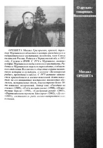 О друзьях- товарищах. Воспоминания Михаил ОРЕШЕТЛ ОРЕШЕТЛ Михаил Григорьевич, краевед, дирек тор Мурманского областного центра гражданского и патриотического воспитании молодежи, член Союза писателей России. Родился в Черниговской обл. в 1951 году. Служил в ВМФ. С 1974 в Мурманске, окончил истфак Мурманского педагогического института. Ра ботал в Мурманском морском пароходстве, в област ном отделении Всесоюзного общества охраны памят ников истории и культуры, в колхозе «Беломорский рыбак», преподавал в школе. С 1975 активно занима ется краеведением и военно-поисковой деятельнос тью: по его инициативе поставлено множество обе лисков , мемориальных досок, благоустроено более 30- ти воинских захоронений. Автор книг «Гвоздики на скалах» (1989), «О чём молчат скалы» (1998), «Осиро тевшие берега» (1998), «Серебряный ручей» (2001), «Партизанскими тропами Заполярья» (2002), «Дучль» (2003), составитель ряда военно-патриотических изданий.