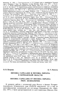 Монголии. Л., 1983. — Г р и г о р ь е в с к а я А. Я. К флоре мхов и лишайников Галичьей горы и Ппюшани // Науч. зап. Воронеж, отд-ния Всесоюз. ботан. о-ва. 1974. — Е л е н к и н А. А. Флора лишайников Средней России. Юрьев, 1906— 1911. Ч. 1— 4. — И н с а р о ва И. Д.. И н с а р о в Г. Э. Сравнительные оценки чувствительности эпифитиых лишайников различных видов к загрязнению воздуха // Проблемы экологического мониторинга и модели рования экосистем. Л., 1989. Т. 12. — К а м ы ш е в Н. С., Х м е л е в К. Ф. Растительный покров Воронежской области и его охрана. Воронеж, 1976. — К а ш м е н с к и й Б. Ф. Ли шайники Курской и Харьковской губ. I/ Ботан. журн., издаваемый Отд-нием ботаники Имп. С.-Петерб, о-ва естествоисп. 1906. № 3. — К р а с н а я к н и г а СССР. М., 1984. Т. 2. — Л а в р е н к о Е. М. Степи СССР И Растительность СССР. М., 1940. Т. 2. — М а к а р е в и ч М. Ф. Аналіз ліхенофлори УкраУнських Карпат. Киів, 1963. — М а к а р е в и ч М. Ф„ Н а в р о ц к а я И. Л., Ю д и н а И. В. Атлас географического распространения лишайников в Украинских Карпатах. Киев, 1982. — М а к а р о в а И. И. Лишайники учлесхоза «Лес на Во- рскле» // Учен. зап. ЛГУ. Сер. биол. науки. 1970. Вып. 52, № 351. — М и л ь к о в ф . Н. Природа центрапьио-черноземных областей и ее преобразование II Вопросы географии. М., 1953. Сб. 32. — М у ч н и к Е. Э. Использование ЭВМ в систематике низших растений на примере информационно-поисковой системы «R-Lichens» // Экологическое образование и компьютеризация ботанических дисциплин: Тез. докл. зав. каф. ботаники университетов РСФСР (Воронеж, 20— 27 мая 1991). Воронеж, 1991а. — М у ч н и к Е. Э. Лихенофяора бас сейна Среднего Дона: Автореф. дис. ... канд. биол. наук. Воронеж, 19916. — М у ч н и к Е. Э. Лихеиофпора и типичные лишайниковые группировки сухого бора // Состояние н проблемы экосистем Усманского бора. Воронеж, 1994а. Вып. 4. — М у ч н и к Е. Э. Осо бенности пространственного распределения лишайников и типичные лихеносинузии Усман ского бора (Воронежская область) // Ботан. журн. 19946. Т. 79, № 12. —- М у ч н и к Е. Э. Лишайники памятника природы в урочише «Мордва» // Природные ресурсы Воронежской области, их воспроизводство, мониторинг и охрана. Воронеж, 1995. — М у ч н и к Е . Э. Опыт лихеноииднкационных исследований на территории Воронежа // Геоэкологические проблемы устойчивого развития городской среды. Воронеж, 1996. — О к с н е р А. Н. Опре делитель лишайников СССР. Л., 1974. Вып. 2. — О п р е д е л и т е л ь л и ш а й н и к о в СССР. Л., 1971. Вып. 1; 1975. Вып. 3; 1977. Вып. 4; 1978. Вып. 5. — П ч е л к и и А. В. Эпифитные лишайники Центральночерноземного заповедника // Проблемы экологического мониторинга и моделирования экосистем. Л., 1983. Т. 6. — С а в и ч В. П. О новом почвенном лишайнике Comicularia steppae Mihi и лишайнике Comicularia tenuissima // Ботан. материалы Института споровых растений. 1924. Т. 3, вып. 12. — С е д е л ь н и к о в а Н. В., Л а щ и н с к и й Н. Н. Лишайники карбонатных местообитаний Салаира II Изв. СО АН СССР. Сер. биол. науки. 1990. № 2. — Т о м и н М. П. Материалы к лишайниковой флоре Воронежской губернии II Зап. Воронеж, с.-х. ин-та. 1926. Т. 5. — Т о м и и М. П. Определитель корковых лишайни ков европейской части СССР. Минск, 1956. — Т р а с с X. X. Элементы и развитие лихе- нофлоры Эстонии II Учеи. зал. Тартуского ун-та. Тр. по ботанике. 1970. Т. 9. — Ш м и д т В. М. Количественные показатели в сравнительной флористике // Ботан. журн. 1974. Т. 59, № 7. — P o e l t 1. Classification II The lichens. New York; London, 1973. — S a n - t c s s o n R. The lichens and lichenicolous fungi of Sweden and Norway. Lund, 1993. О. В. Петрова О. V. Petrova BRYORIA 