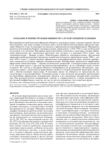 УЧЕНЫЕ ЗАПИСКИ ПЕТРОЗАВОДСКОГО ГОСУДАРСТВЕННОГО УНИВЕРСИТЕТА № 8 (185). С. 102-110 Этнография, этнология и антропология 2019 DOI: 10.15393/uchz.art.2019.419 УДК 39:94(924.14/16)«20» ИРИНА АЛЕКСЕЕВНА РАЗУМОВА доктор исторических наук, главный научный сотрудник Центр гуманитарных проблем Баренц региона - филиал Федерального государственного бюджетного учреждения науки Федеральный исследовательский центр «Кольский научный центр Российской академии наук» (Апатиты, Российская Федерация) irinarazumova@yandex.ru ТОЗДАНИЕ И РЕКОНСТРУКЦИЯ ОБЩНОСТИ: СЛУЧАЙ СПЕЦПЕРЕСЕЛЕНЦЕВ Рассматривается проблема идентификации общности «спецпереселенцы» в разные периоды. Целью было выяснить, как люди, которые соотносят себя с этой исторической категорией, определяют кри терии общности и как эти критерии соотносятся с официальными идентификаторами. Материалом являются воспоминания бывших спецпереселенцев, привезенных в 1929-1930-х годах на Кольский полуостров, и их потомков. Высланные преимущественно относились к категории, которая офици ально определялась как «зажиточные крестьяне» или «кулаки», а с середины 1940-х годов - как «спецпереселенцы - бывшие кулаки». Ревитализация общности «спецпереселенцы» обусловлена характером реабилитационного процесса и сменой идеологических ориентиров в конце 1980-х - на чале 1990-х годов. С утратой прежних официальных идентификаторов большее значение приобре тали социально-культурные маркеры спецпереселенцев. Одновременно происходило нарративное оформление новой категории - «жертвы политических репрессий». Спецпереселенцы включаются в эту категорию вместе с другими группами репрессированных, но не утрачивают своей отличи тельности. Их чувство и осознание общности основываются на историческом обозначении, «кре стьянских корнях», совокупности нравственных свойств и сходной жизненной траектории, связан ной с обстоятельствами переселения. В настоящее время эта общность по преимуществу на следственная и коммеморативная. Спецпереселенцы в лице потомков продолжают рассчитывать на масштабные официальные мемориальные проекты и на узаконенные материальные компенса ции. Они руководствуются императивами «закона» и «справедливости» и вновь оказываются во внутренней конфронтации с властью, но уже по другим основаниям, чем в советское время. Ключевые слова: спецпереселенцы, идентификация, общность, социальная антропология Д ля ц и т и р о в а н и я : Разумова И. А. Создание и реконструкция общности: случай спецпереселенцев // Ученые записки Петрозаводского государственного университета. 2019. № 8 (185). С. 102-110. DOI: 10.15393/uchz.art.2019.419 ВВЕДЕНИЕ В истории формирования населения мно гих территорий Российского Севера и Сибири в ХХ веке спецпереселенцы сыграли заметную роль. Целый ряд местностей и отдельных посе лений, созданных в советское время, имеют ре путацию «ссыльных», в соответствии с которой выстраивается их история. Обширная истори ография спецпереселений включает детальные исследования, выполненные на региональных материалах. Большей частью они сосредоточе ны на депортациях по этническим основани ям [1], [8], [30], на «крестьянской ссылке» [4], [5], [15] и положении высланных в конкретных регионах [3], [7], [12], [17], [24], [29]. К основ ным можно отнести проблемы социальной адаптации переселенцев, особенно когда речь идет об этнических группах, а также вопро сы о степе