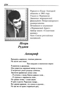Руднев, И. А. Апокриф // Мурманский берег : литературный альманах / Мурм. орг. Союза рос. писателей. – Мурманск, 2008. - [Вып.] 13. - С. 234-235 : фот.