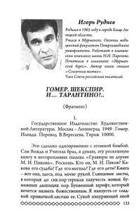 Руднев, И. А. Гомер. Шекспир. И... Тарантино?.. : эссе // Мурманский берег : литературный альманах / Мурм. орг. Союза рос. писателей. - Мурманск, 2013. - [Вып.] 17. - С. 133-140.