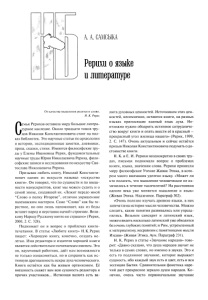 А. А. САМСЫКА Рерихи о языке и литературе О т качества мышления родится и слово. Н. К. Рерих С емья Рерихов оставила миру большое литера турное наследие. Около тридцати томов тру дов Николая Константиновича стоят на пол ках библиотек. Это научные статьи по археологии и истории, экспедиционные заметки, дневники, проза, сказки, стихи. Имеются философские тру ды у Елены Ивановны Рерих, фундаментальные научные труды Юрия Николаевича Рериха, фило софские записи и исследования по искусству Свя тослава Николаевича Рериха. Призывая любить книгу, Николай Константи нович одним из искусств называл «искусство книги». Он говорил, что по сущности и по внеш ности манускриптов, книг мы можем судить и о самой эпохе, создавшей их. «Лежит передо мной “ Слово о полку Игореве ” , отлично украшенное палеховским мастером. Само “ Слово ” как бы го рестное, но оно лишь напоминает, как из беды встанет народ и неустанно начнёт строение. Вели кому Народу Русскому ничто не страшно» (Рерих, 2000, 2. С. 328). Поднимает он и вопрос о проблемах книго печатания. В статье «Любите книгу» Н.К.Рерих пишет: «Хорошую книгу, конечно, создать не легко. Имя редактора и издателя хорошей книги является действительно почитаемым именем. Это он, вдумчивый работник, даёт нам возможности не только ознакомиться, но и сохранить как ис тинную драгоценность искры духа человеческого. Книга остаётся как бы живым организмом. Её внешность скажет вам всю сущность редактора и прочих участников... Истинная валюта есть ва люта духовных ценностей. Источником этих цен ностей, несомненно, остаются книги, на разных языках приносящие единый язык духа. Не отложно нужно ободрить истинное сотрудниче ство вокруг книги и опять внести её в красный - прекрасный угол жилища нашего» (Рерих, 1999, 2. С. 147). Очень актуальным и сейчас остаётся призыв Николая Константиновича подумать о до стоинстве книги. Н. К. и Е. И. Рерихи неоднократно в своих тру дах, письмах поднимали вопрос о проблемах книги, языка, значении слова. Рерихи принесли миру философское Учение Живая Этика, в кото ром много внимания уделено языку. «Может ли кто полагать, что мышление человеческое не из менилось в течение тысячелетий? На расстоянии одного века уже меняется мышление и язык» (Живая Этика. Надземное. Параграф 302). «Очень полезно изучать древние языки, в них запечатлена история мысли человечества. Можно следить, какие понятия развивались или упразд нялись. Возьмем санскрит и латинский язык, можем видеть насколько латинский уже обходится без очень глубоких понятий; и Рим, устремленный к материализму, несравним с памятниками мысли Индии» (Живая Этика. Аум. Параграф 231). Н. К. Рерих в статье «Звучание народов» гово рит: «Давно сказано, что душа народов звучит не только в самих словах, но именно в звуках. Это и есть то подлинное звучание, которое выражает сущность, ибо каждый звук есть и цвет, есть и вся эссенция Бытия. Сравнительная фонетика наре чий даст прекрасное зеркало души народов. Ко нечно, очень часто первоначальное звучание
