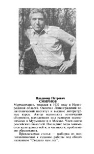 Владимир Петрович СМИРНОВ Мурманчанин, родился в 1939 году в Новго родской области. Окончил Ленинградский по литехнический институт и высшие литератур ные курсы. Автор нескольких поэтических сборников, выходивших иод разными псевдо нимами в Мурманске и в Москве. Член союза российских писателей. Последние годы занима ется культурологией и, в частности, проблема ми образования. Предлагаемая статья — выборка из под готавливаемой к изданию работы под общим названием "Сколько нам лет” .