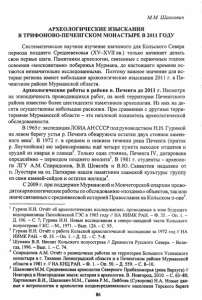Шахнович, М. М. Археологические изыскания в Трифоново-Печенгском монастыре в 2011 году // IX Ушаковские чтения, [Мурманск, 14-16 марта 2012 г.] : сборник научных статей / [редкол.: П. В. Федоров (науч. ред.) и др.]. - Мурманск, 2013. - С. 86-97.