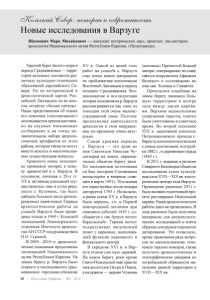 (КСосШ сктйц^еВеА.-аопю/гтяиосВргекяеннос^пь Новые исследования в Варзуге Шахнович Марк Михайлович — кандидат исторических наук, археолог, зав.сектором археологии Национального музея Республики Карелия, г.Петрозаводск. Терский берег Белого моря в период Средневековья — терри тория активных контактов раз личных культурно-этнических образований европейского Се вера. Но на исторической и археологической картах Рос сийской Лапландии он во мно гом остаётся «белым пятном». Наши представления об этапах его освоения («колонизации») основываются преимуществен но на скудных письменных сообщениях и на очень не значительном наборе археоло гических артефактов из этого района, которые также не могут внести ясность в многочислен ные существующие вопросы. Археологи очень эпизодич но проявляли интерес к поис ку древностей в с. Варзуга. В основном, начиная с 20-х гг. ХХ в. активные изыскания осу ществлялись ими в устье реки, около с. Кузомень, где было найдено большое число разнов ременных памятников. Первые археологические работы на усадьбе Варзуги были прове дены только в 1969 г. Кольской экспедицией Ленинградского отделения Института археоло гии АН СССР под руководством Н.Н. Гуриной. В 2009—2010 гг. археологи ческие изыскания продолжены экспедицией Национального музея Республики Карелия. На левом берегу р. Варзуга было открыто и исследовалось сред невековое городище-убежище 58 Под сенью Трифона | №3 2012 XV в. Одной из целей этих работ на усадьбе с. Варзуга стал поиск новых материалов по проблематике колонизации Восточной Лапландии в период позднего Средневековья. Воз никновение и последующая история поселения на р. Варзуга рассматриваются как один из эпизодов этой очень малоис следованной темы. Поэтому продолжение деятельности археологов в этом направле нии по-прежнему очень акту ально. Самая древняя церковь с. В арзуга — это храм во имя Святителя Николая Чу дотворца на левом, первона чально обжитом берегу реки. По письменным источникам он был построен Соловецким монастырём и впервые освя щён в марте 1491 г. Последняя его перестройка после пожара датируется 1705 г. Возможно, и ранее конца XV в. в Варзуге была церковь, т.к. в Первой новгородской летописи при описании событий 1419 г. со общается о «въ Арзуге погост Корельскый». Термин погост подразумевал населённый пункт с церковью, выполняв ший функции церковного и фискального центра. В середине XVI в. в Вар зуге стояли уже пять церквей. На левом берегу реки кроме Свято-Никольской ещё храм во имя апостолов Петра и Павла, а на правом — церкви Успения (кончины) Пречистой Божьей матери, «патриаршая» во славу святого покровителя Афанасия Великого и «соловецкая» во имя свв. Зосимы и Савватия. Приходское кладбище на левом берегу занимало боль шую территорию в центре села между двумя церквя ми. Верхние надмогильные сооружения (кресты, плиты) были уничтожены в советское время. Во второй половине XIX в. церковный комплекс Петропавловского прихода с. Варзуга дополняли колокольня с семью колоколами, построй ки 1882 г., и деревянная ограда (1845 г.). В 2011 г. впервые в регионе Северного Беломорья объектом исследования стали культур ные слои XVII—XIX вв. в исто рическом центре села Варзуга. Проведение раскопок 2011 г. было вызвано подготовкой про екта реставрации Никольской церкви. Ранее археологические работы здесь не провод