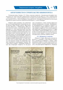 Творческая галерея / Art gallery Л - \ ! АВТОР ПОВЕСТИ О СТРОИТЕЛЬСТВЕ ХИБИНОГОРСКА Постоянный автор «Тиетты» Е.Н. Шталь знакомит читателей с драматической биографией писа тельницы Н.М. Гирей (1910-2001), автора повести «Шестьдесят восьмая параллель» (1937) о строительстве г. Хибиногорска, ныне г. Кировска Мурманской обл. В статье использованы материалы личного дела Н.М. Ги рей из архивов ФСБ по г. Санкт-Петербургу иЛенинградской обл., Ленинградского энергетического техникума и рукописного отдела Российской национальной библиотеки в г. Санкт-Петербурге. Непросто найти женщину, чья судьба была бы столь же противоречива и загадочна, как судь ба Натальи Гирей, автора повести «Шестьдесят восьмая параллель» о Хибиногорске. Много бе лых пятен в её судьбе, а известные факты проти воречивы. И к этому приложила руку она сама, большая выдумщица, писавшая свою жизнь как большой и длинный увлекательный роман, кото рый найдёт своего читателя через много лет. До статочно сказать, что в автобиографиях она указы вала четыре разных места рождения, донельзя за путывала биографические данные, выступала под четырьмя разными фамилиями. И судьба помо гала ей в этом до самого конца: даже даты смер ти у неё оказалось четыре. И в справочных изда ниях встречаются недостоверные сведения. Так, в двухтомном словаре С. Чупринина «Новая Рос сия: мир литературы» говорится, что она роди лась в итальянском г. Генуя, окончила факультет языково-материальной культуры Ленинградско го госуниверситета, 6 лет провела в лагерях и т.д. Эти сведения Н. Гирей сообщила в анкете, и ав тор словаря ей доверился. Что ж, она не одинока в своих фантазиях. Итальянский писатель Т. Гуэрра тоже говорил: «Одной биографии мало, их долж но быть по меньшей мере сто». В этой статье я по пытался отсеять правду от вымысла. Но прежде, чем приступить к рассказу, приведу цитату. А.С. Макаренко о повести «Повесть Н. Гирей «Шестьдесят восьмая па раллель» [...] вызывает у меня тяжёлое недоуме ние и лишний раз возвращает к старому, давно надоевшему вопросу: до каких пор мы будем пе чатать что попало, до каких степеней может дохо дить у нас редакторская небрежность, литератур- - г У Д О С Т О В Е Р Е Н И Е лсним геддснин ГУЕСРЛСННЛ ОТДЕЛ шрол ногд СЁРД.]неагшч подотдел СОЦеРЕА 192. i Предъявитель Ш т з й - . . родпвш v и»» ОБУЧАЛА В ■ *" [□BEUKQfliEAnrffln ТРЩЩШП ШНЖ ■J'l/rWA - по . г. П DH0H4nn т* nomihin курс ПРП ч е й □ ИШШ ГШ ШШОЧПЫЕ ПОЗНАНИЯ ИРД36ПТЛЕ ПО АСЕМ о & а т ш ш ПРЕДМЕТАМКУРСА, д пмишп: пи полному языку илитературе '(риспметпке, АЛГЕБРЕ. ГЕПМЕТРНИ. TPlTl'UHDMETpilfl, ЕСТЕСТВОНЕДЕМИНЭ. ниИЗККГ f ХИМИИ ГЕИ- Г I '- .mi 1П. UStUfcU UUtJtМ Н ИЮ ЯЗЫКУ, ппгг .1ДИМЮ.riFt-im 'j В ИЗЛОЖЕННОМ. ПП ППЕТДИОВЛЕПШа ПЕДДПЖПЧЕШОГО СОВЕТА ПТ //■ *> р т 192 ШНГТ 1 лЬп ЕАПГ 1 ПИ ТРУДСШИ ШКОЛЫ. ВЫДАНА WWHAtTQFllllEE УДЛЩОВЕРЕППЕ мл. ЗДВЕДШВЛНИППП школ пн члены цвеитй секретарь tuBtm . I ; - 7 Удостоверения об окончании «советской единой трудовой школы».