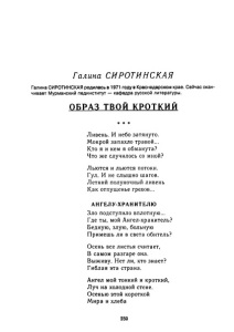 Сиротинская, Г. В. Образ твой кроткий : стихи // Мурманский берег : литературный альманах / Мурм. орг. Союза рос. писателей ; [гл. ред. И. А. Бессонов]. – Мурманск, 1999. - № 5. - С. 230-232.
