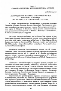 Терещенко, Е. Ю. Лапландия как историко-культурный регион Европейского Севера (на материалах исследований XV-XVII вв.) // Саамская идентичность: проблемы сохранения языка и культуры на Севере : материалы международной научной конференции, 10-11 марта 2011 г. / М-во образования и науки Рос. Федерации, Мурм. гос. гуманитар. ун-т. – Мурманск, 2012. – С. 56-63.
