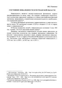 Ткаченко, И. Л. Состояние инвалидности в Мурманской области // Устойчивое социальное развитие северных территорий России: опыт, проблемы, перспективы / М-во образования и науки Рос. Федерации, Мурм. гос. гуманитар. ун-т, М-во образования и науки Мурм. обл. [и др]. - Мурманск, 2013. - С. 109-113.
