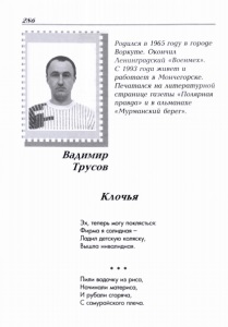 Трусов, В. В. Стихи // Мурманский берег : литературный альманах / Мурм. орг. Союза рос. писателей. – Мурманск, 2008. - № 13. - С. 286-292 : фот.