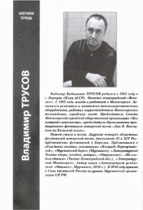 Трусов, В. В. Выкрутасы скупой зимы : [стихи] // Площадь Первоучителей : литературно-художественный и общественно-политический альманах Мурманского отделения Союза писателей России. - Мурманск, 2011. - № 11. - С. 186-191.