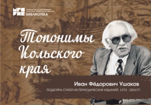 Ушаков И. Ф. Топонимы Кольского края : подборка статей из периодических изданий, 1972 - 2004 гг. / Иван Фёдорович Ушаков ; Мурм. гос. обл. универс. науч. б-ка. – Мурманск : МГОУНБ, 2022. – 1 файл (37,1 МБ). – URL: http://kolanord.ru/ (дата обращения: 14.02.2022).