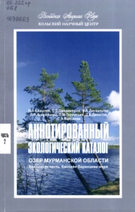 Валькова С.А. Аннотированный экологический каталог озер Мурманской области (Восточная часть. Бассейн Баренцева моря). В 2 Ч. Апатиты, 2010. Ч 2.