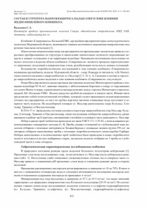 Валькова С.А. https://doi.org/10.31241/FNS.2018.15.107 Труды Ферсмановской научной сессии ГИ КНЦ РАН. 2018. 15. С. 422-424 СОСТАВ И СТРУКТУРА МАКРОЗООБЕНТОСА МАЛЫХ ОЗЕР В ЗОНЕ ВЛИЯНИЯ МЕДНО-НИКЕЛЕВОГО КОМБИНАТА Валькова С.А. Институт проблем промышленной экологии Севера, обособленное подразделение КНЦ РАН, Апатиты, valkova@inep.ksc.ru Комбинат«Североникель»КольскойГМК-крупнейшеепредприятиегорно-металлургического комплекса Мурманской области, являющееся главным источником загрязнения поверхностных вод региона тяжелыми металлами [1]. Многолетняя антропогенная нагрузка предприятия на пресноводные экосистемы привела к се рьезным преобразованиям их структуры и накоплению значительных количеств загрязняющих ве ществ в донных отложениях и на территории водосбора. Основными источниками поступления тя желых металлов в водоемы вблизи комбината «Североникель» являются процессы аэротехногенно- го загрязнения, подземный и поверхностные стоки, ремобилизация металлов из донных отложений. Большинство гидробиологических исследований в зоне влияния комбината «Североникель» посвящены крупнейшему водоему Мурманской области - озеру Имандра (в частности, губе Монче). также имеются сведения о макрозообентосе оз. Нюд-явр [2, 9, 10, 6, 1]. Сведения о составе и структу ре макрозообентоса малых водоемов в зоне влияния комбината «Североникель» отсутствуют. Озеро Нюд-явр является самым крупным внутренним водоемом Мончегорского района с пло щадью водосбора 90.54 км2, занимает впадину с заболоченными берегами к северу от окружающих его сопок Монче-тундры, и располагается непосредственно между городом Мончегорск и промпло- щадкой АО «Кольская ГМК». Водоем разделен дамбой на северную и южную части. Южная часть представляет собой технологический отстойник, который служит приемником сильнозагрязненных сточных вод предприятия, из него по трубам перетока частично очищенные воды поступают в се верную часть водоема. На водосборной площади оз. Нюд-явр расположены озера Кумужье, Соп- чъявр, Травяное и Пыслысчимъявр. В 2016-17 гг. проводилось изучение состава и структуры макрозообентоса озер Нюд-явр, Куму жье, Сопчъявр, Травяное и Пыслысчимъявр, также исследованы сообщества макрозообентоса, разви вающиеся в районе труб перетока, связывающих отстойник и основную часть акватории оз. Нюд-явр. Отбор и анализ проб зообентоса проводили согласно ГОСТ 17.1.3.07-82, с использованием ре комендованных стандартных методик [5, 8]. Пробы донных отложений из глубоководной зоны во доемов отбирали с помощью дночерпателя Экмана-Берджа с площадью захвата грунта 290 см2, на литорали отбирали качественные пробы с помощью гидробиологического сачка-скребка Сарбера. Отборы качественных и количественных проб зообентоса были проведены в конце гидробиологи ческого лета (август) во всех выбранных озерах, на каждом водоеме отобрано по 3 пробы из глубо ководной части и зоны литорали. Гидрохимическая характеристика исследованных водоемов В природном состоянии реакция среды водоемов Кольского полуострова нейтральная [1]. Придонные слои воды исследованных озер, за исключением оз. Нюд-явр имели нейтральную реак цию (табл. 1). Поступление слабо очищенных сильнощелочных сточных вод в северную часть оз. Нюд-явр привело к повышению pH придонных слоев воды и смещению реакции среды в сторону щелочной. Насыщение растворенным кис