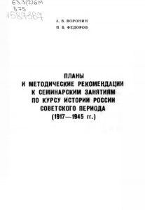 Воронин, А. В. Планы и методические рекомендации к семинарским занятиям по курсу истории России советского периода (1917-1945 гг.) / А. В. Воронин, П. В. Федоров ; М-во образования Рос. Федерации, Мурм. гос. пед. ин-т. – Мурманск : [б. и.], 2000. - 52 с.