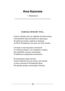 Воронова, И. Ю. Сквозь призму роз : стихотворение / Инна Воронова // Про100поэзия. – Новокузнецк : Союз писателей, 2024. - С. 32.