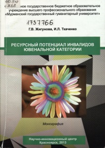 Ткаченко, И. Л. Ресурсный потенциал инвалидов ювенальной категории : монография / Г. В. Жигунова, И. Л. Ткаченко ; Федер. гос. бюджет. образоват. учреждение высш. проф. образования "Мурм. гос. гуманитар. ун-т". - Красноярск : Научно-инновационный центр, 2013. - 219 с. : ил.