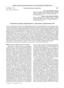 УЧЕНЫЕ ЗАПИСКИ ПЕТРОЗАВОДСКОГО ГОСУДАРСТВЕННОГО УНИВЕРСИТЕТА № 7 (168). С. 7-14 УДК 316.662.2:94(470.21) Исторические науки и археология 2017 ОЛЬГА ВАСИЛЬЕВНА ЗМЕЕВА кандидат исторических наук, старший научный сотрудник Центра гуманитарных проблем Баренц региона, Кольский научный центр РАН (Апатиты, Российская Федерация) zmeyeva@rambler.ru ИРИНА АЛЕКСЕЕВНА РАЗУМОВА доктор исторических наук, главный научный сотрудник Центра гуманитарных проблем Баренц региона, Кольский научный центр РАН (Апатиты, Российская Федерация) irinarazumova@yandex. ru СПЕЦПЕРЕСЕЛЕНЦЫ ХИБИНОГОРСКА: ДИНАМИКА ИДЕНТИЧНОСТЕЙ * Статья посвящена актуальным в историографии советского периода вопросам категоризации насе ления на начальных этапах индустриального развития страны. На Кольском полуострове значи тельную часть строителей промышленных городов составляли спецпереселенцы. Впервые ставится проблема соотнесения официального статуса данной группы с самоидентификацией и динамикой идентичностей ее представителей. Материалом служат воспоминания спецпереселенцев города Хибиногорска (1929-1934 годы) и их потомков. Целями исследования, выполненного на основе антропологического подхода, были анализ процесса разрушения старой и формирования новой идентичности, соответствующей заданному статусу, а также выявление ее последующих трансфор маций и новых смыслов. Коллективная идентичность, сформированная принудительной миграци ей, как и индивидуальная, трансформируется в процессе адаптации и приобретения новых статусов. Впервые установлено, что конфликт старой и новой идентичностей мог быть сбалансирован благо даря соотнесению с другими идентичностями, которые формировались в условиях строительства заполярного социалистического города, а также за счет усиления семейной идентичности. Ключевые слова: спецпереселенцы, социальный статус, идентичность, воспоминания, Хибиногорск Первые жители первых советских городов Они называют себя «бывшими»: крестьянами, «лишенцами», кулаками, спецпереселенцами, врагами народа, раскулаченными и репресси рованными. Они - это первые жители первых советских городов на Кольском полуострове. Это выходцы из различных регионов и, как правило, сельских местностей. Их «выселили, привезли, сослали» в Хибины в период разворачивания масштабного проекта - спецколонизации, инду стриализации и масштабного освоения ресур сов, в первую очередь, недостаточно обжитых регионов страны [1], [3], [4], [5], [6], [7], [9], [10], [16], [19]1. Формирование данной категории на селения представляет собой серьезную соци ально-историческую проблему. Специалисты стараются разобраться в структуре «спецкон- тингента» как «системного элемента советского общества», и в том числе спецпереселенцев как его части, распределенной на разряды по раз личным статусно-правовым основаниям [2], [15]. В свою очередь, эти основания отличались край ней противоречивостью [9: 135-158]. В разные периоды осуществления политики спецпересе- лений варьировались термины, которые исполь зовались директивными органами, и смыслы, которые в них вкладывались [9: 26-30]. Проблема идентификации тех или иных групп в составе спецконтингента усугубляется многообразием конкретных форм, в которых осуществлялась репрессивная политика на местах, в специфиче ских условиях отдельных регионов, населенных пунктов, производств и в сильно