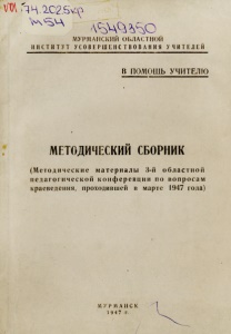 Методический сборник : (методические материалы 3-й областной педагогической конференции по вопросам краеведения, проходившей в марте 1947 г.) / Мурм. обл. ин-т усовершенствования учителей. – Мурманск : [б. и.], 1947. - 122, [2] с. : ил. - (В помощь учителю).